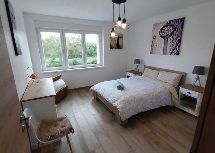 萨尔格米纳Le Bord De Sarre Avec Parking Privatif公寓的客人可以享受江河美景,距离萨瑞古米尼斯高尔夫有2.8公里。 该拥有1卧室的公寓设有共享休息室,1间浴室和公共厨房。